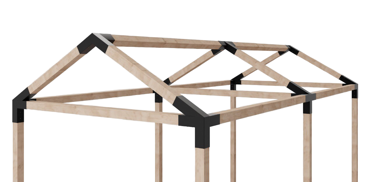 Наши коннекторы могут применяться для возведения внутренних каркасов различных строений, а так же для навесов, террасы и т.д.
